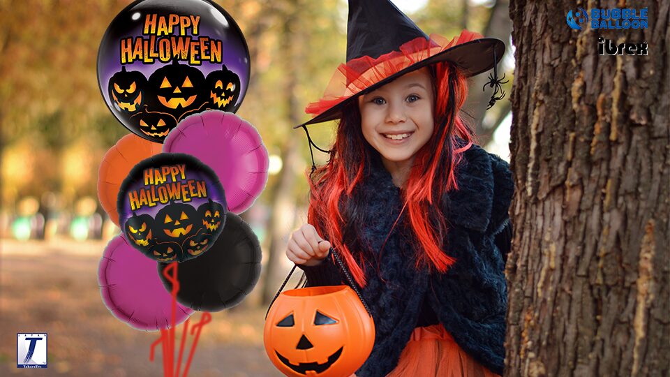 また、グリーンやパープルのアクセントを入れると、ポップでおしゃれなハロウィンの雰囲気に。入口や部屋の角に大きなバルーンを配置するだけで、ハロウィンパーティーがさらに盛り上がります!